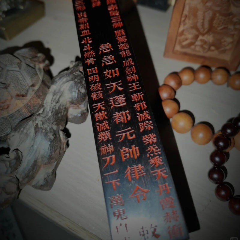 A sacred Taoist tool since the Tang-Song Dynasty, Marshal Tianpeng's Cosmic Ruler embodies the divine power of Marshal Tian Peng, chief guardian of the North Star and commander of 360,000 celestial soldiers. Carved from peach wood or lightning-struck jujube wood, its six faces are inscribed with constellations and invocations, symbolizing cosmic authority to "split mountains and dry seas"