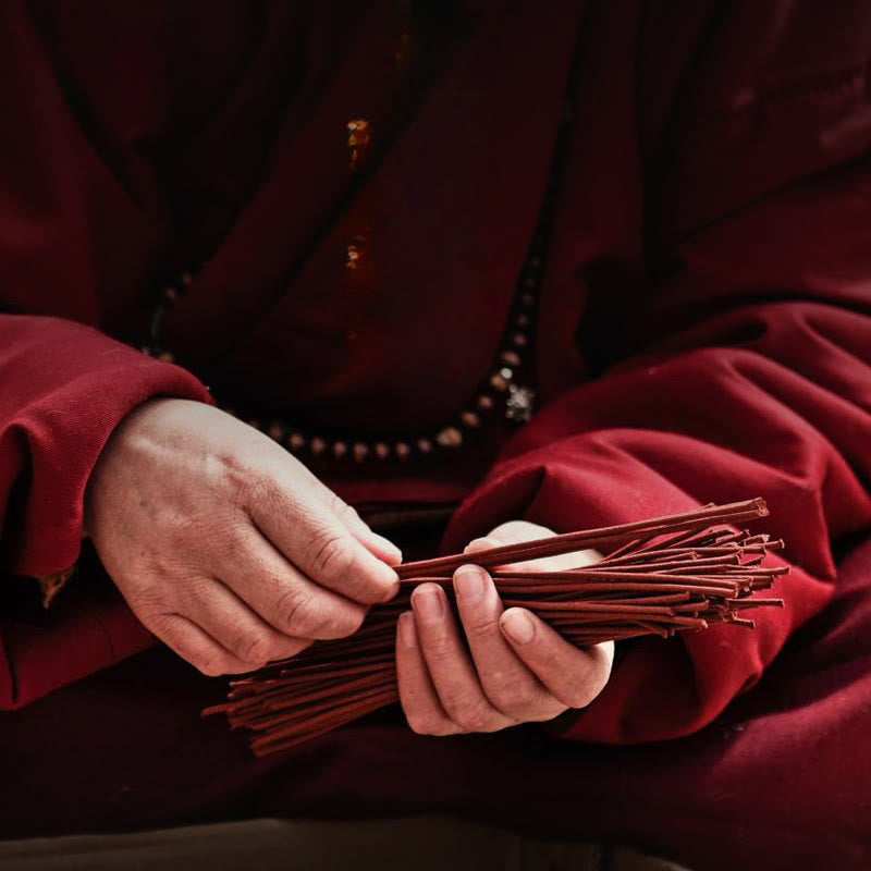 Hand-rolled per Tibetan medical tantras, 113 sticks (105+7) fusing 30+ Himalayan rarities. Each stick engineers triaxial energy purification.